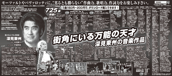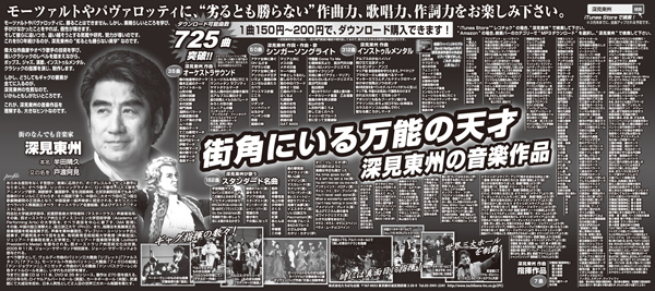 街の何でも音楽家 深見東州 あらゆる差別をなくす思想が、音楽に応用され、ボーダレスルネッサンス歌手になりました。オペラ歌手、シンガーソングライター、ロック歌手、ジャズ歌手、アニメソング歌手、演歌歌手…